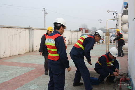 12月6日下午15時50分,安慶港華燃?xì)饧t關(guān)CNG加氣站內(nèi)響起急促燃?xì)鈭缶髀?。緊接著,加氣工迅速關(guān)閉加氣機(jī)應(yīng)急球閥停止加氣,禁止車輛移動,并大聲呼喊:“漏氣了,大家快撤到站外安全地帶?!?/span>15:52分,站內(nèi)司乘人員在加氣工的指導(dǎo)下,全部撤到站外,并在站外拉起警戒線。16:00,站內(nèi)搶修人員通過對泄漏現(xiàn)場的初步判斷泄漏來自2#壓縮機(jī)處,立即停止壓縮機(jī)工作。如此同時,當(dāng)班班長立即把現(xiàn)場情況向站長報告。16:10分,接到指令的站、部門負(fù)責(zé)人帶領(lǐng)部門應(yīng)急行動小組趕到現(xiàn)場。經(jīng)過各行動小組緊張、有序的處置,僅用20分鐘的時間就成功檢查并消除了泄漏——2#壓縮機(jī)法蘭處。16:32,現(xiàn)場指揮發(fā)出:“解除警戒,演練結(jié)束”指令。