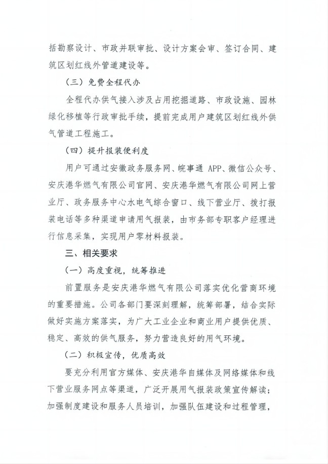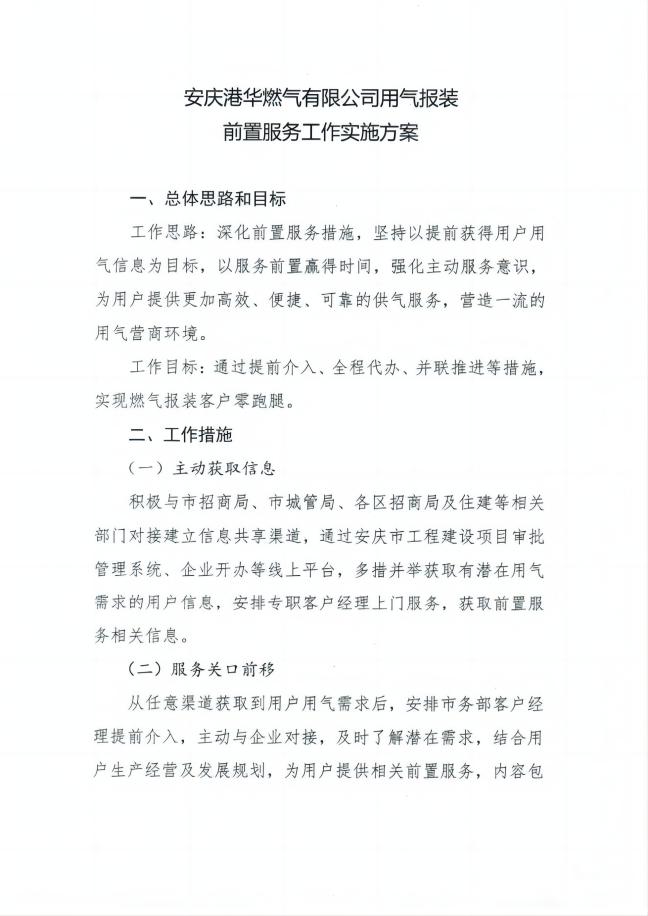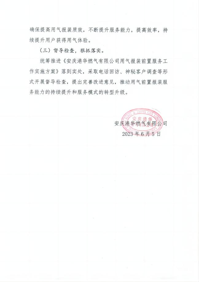 安慶港華燃?xì)庥邢薰居脷鈭?bào)裝 前置服務(wù)工作實(shí)施方案 發(fā)布時(shí)間:2023-06-05    閱讀次數(shù):7253次