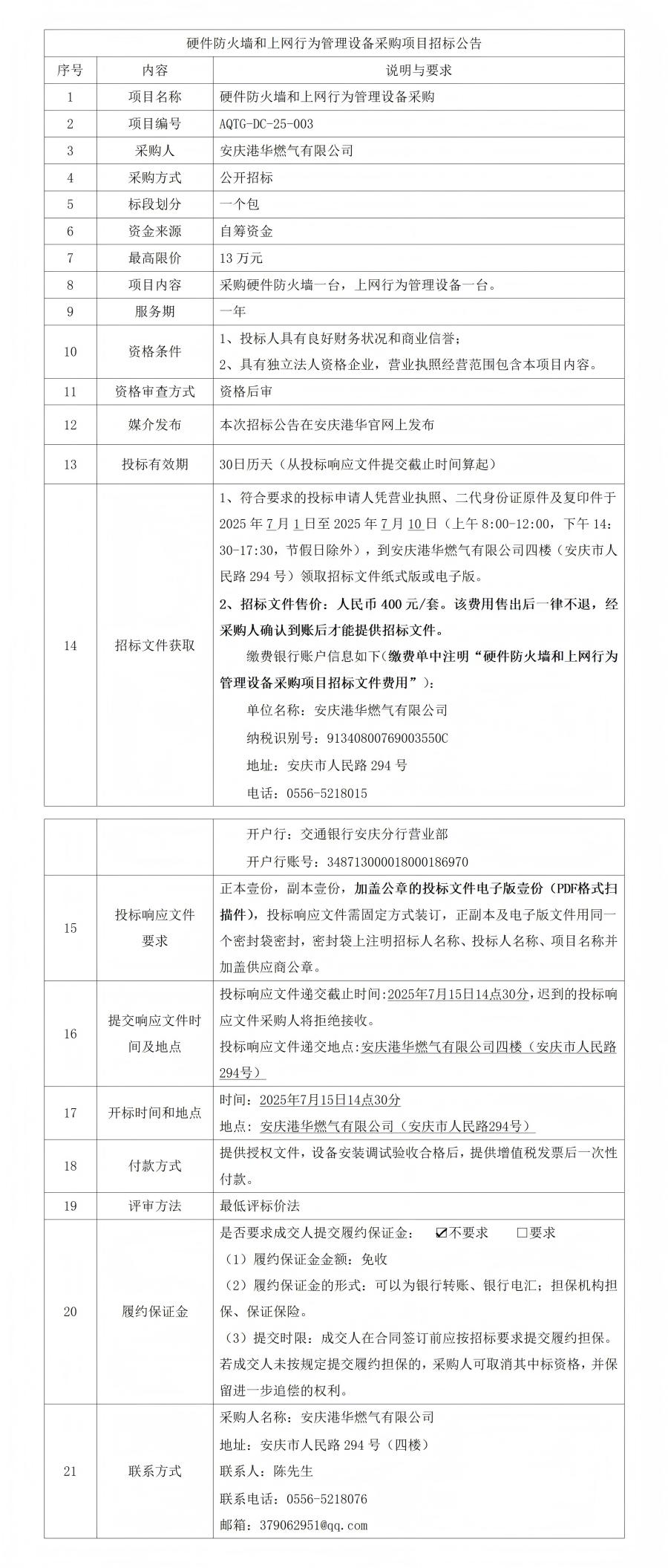 硬件防火墻和上網(wǎng)行為管理設備采購項目招標公告